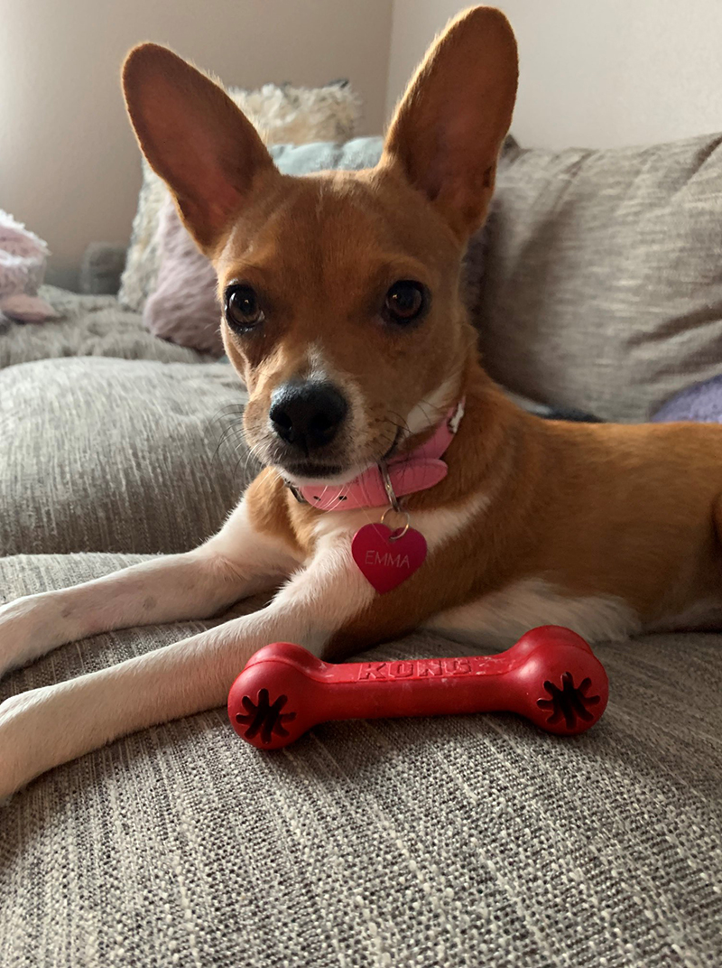 Ms Emma is a healthy 16 pounds and ready for action. Her new forever home must have a secure fenced yard for her boundless energy to have space to play as a 3 year old kid needs exercise - she is ready to roll! A big plus for her is that she is house trained and leash trained. Obedience training would be fun for her. There must be no young children or cats in her new home. If interested in Emma please complete and submit the application for adoption. A home visit is required. There is an adoption fee - $300 |