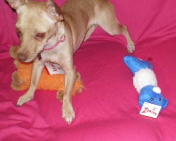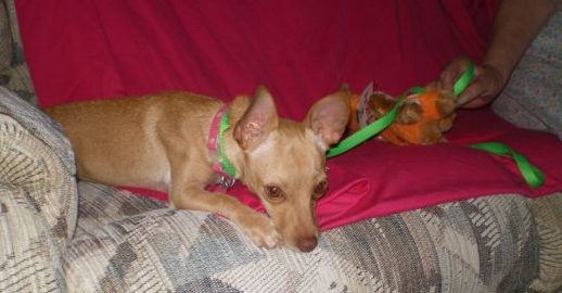 An adult home would suit her best .She will use the pet door but prefers to have a person out with her. She is good with the other small dogs in her foster home and likes to play. Xena must have a secure fenced yard---no chain link. She is a climber.